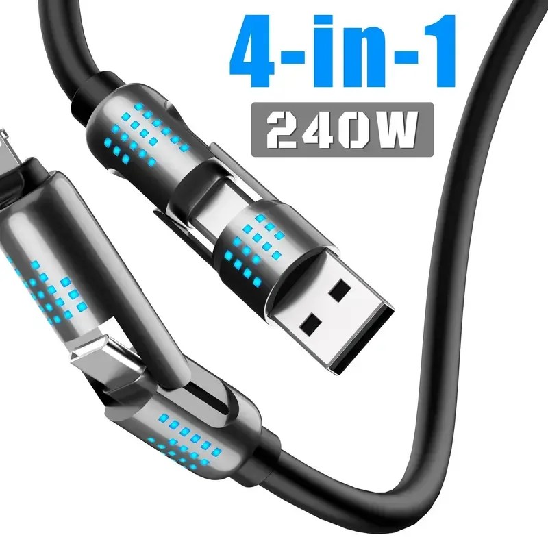 240W 4-in-1 USB-C Cable - PD 5A Fast Charging Data Sync With USB A, TYPE C, Breathing Light, Aluminum Alloy Design 890 sales