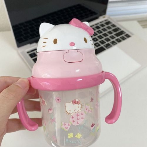 KT water bottle with straw, cute milk cup