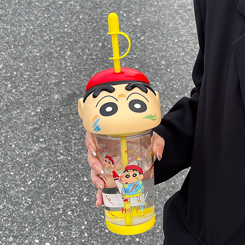 Crayon Shin-chan straw water bottle, 2026 new style, high-value design, Tritan high-temperature resistant cup for girls and students. 907 sales