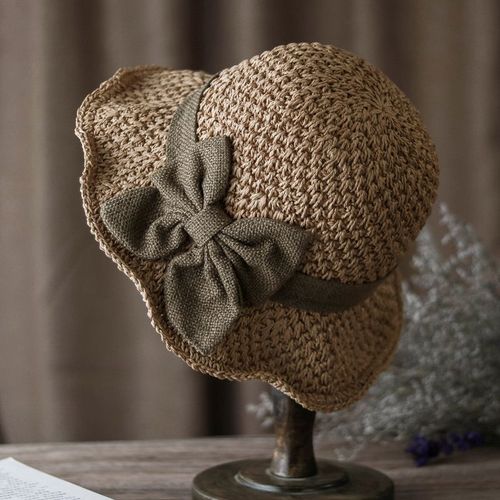 Women's Summer Straw Hat with Simple Bow Small Fresh Eaves for Sun Protection for Fishing Travel Casual Outings Beach Shades 890 sales
