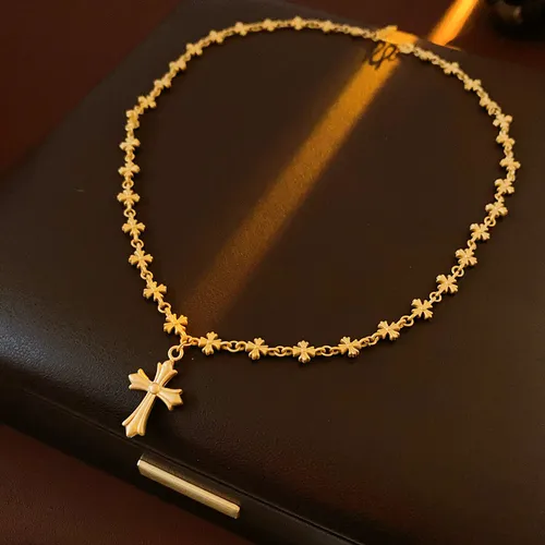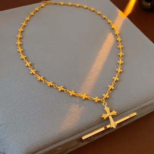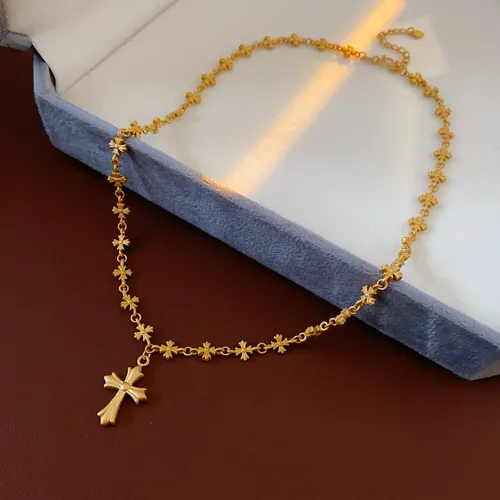 Colorfast gold-plated Croce necklace, cross-style clavicle chain 780 sales