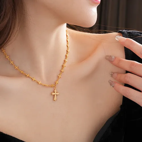 Colorfast gold-plated Croce necklace, cross-style clavicle chain
