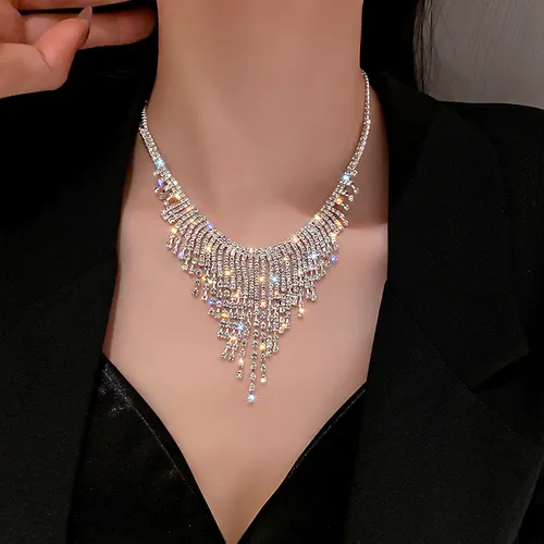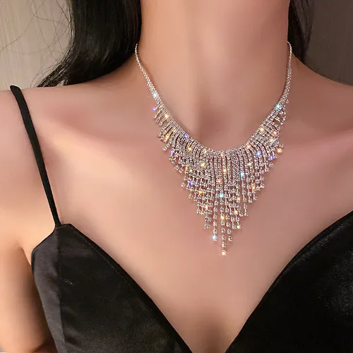 Fashionable and exaggerated personality necklace, new rhinestone tassel necklace