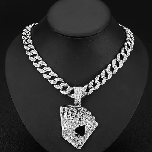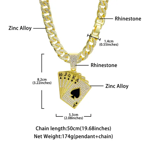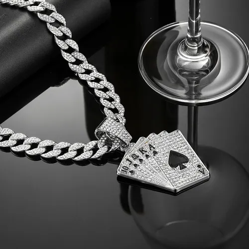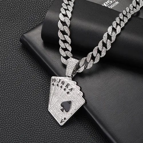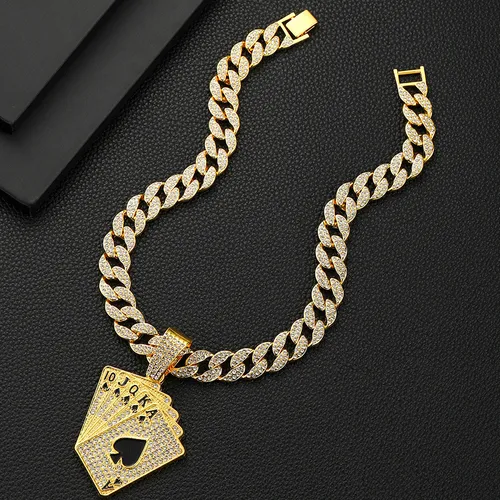 Hot selling fashionable and personalized playing card pendant necklace, men's full diamond hip-hop Cuban necklace