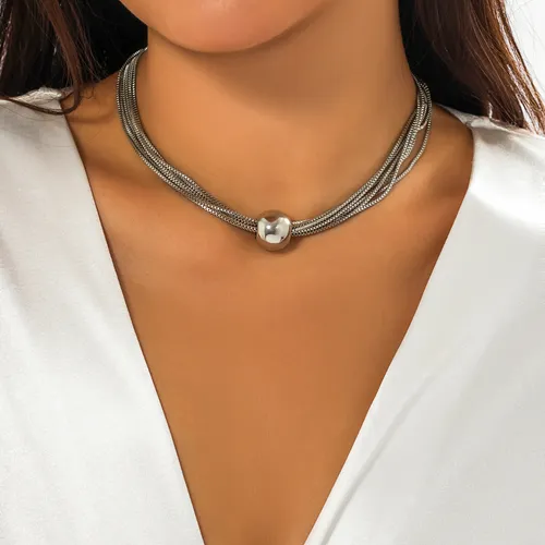 Multi-layer chain stacking necklace Simple niche geometric sphere personality necklace