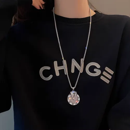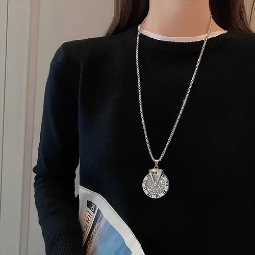 Roman numeral sweater chain, long necklace for men, hip-hop, versatile, rotating pendant
