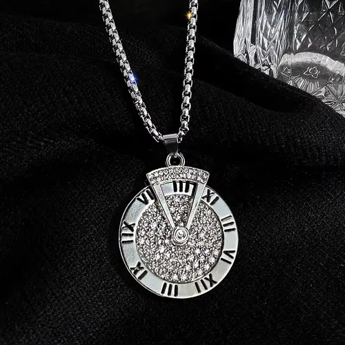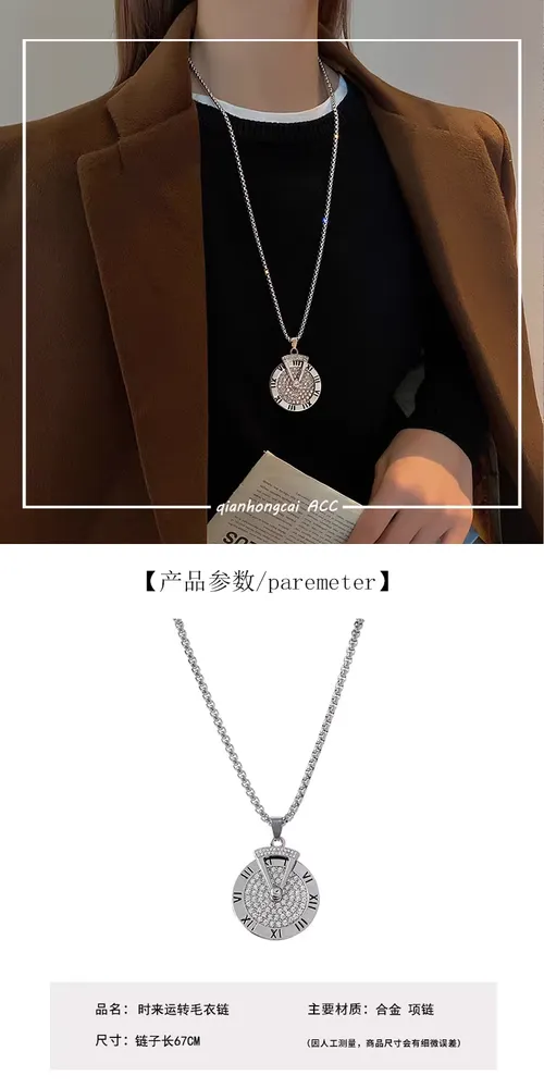 Roman numeral sweater chain, long necklace for men, hip-hop, versatile, rotating pendant 896 sales