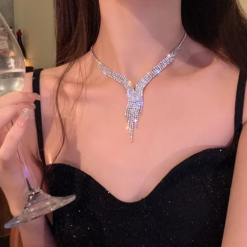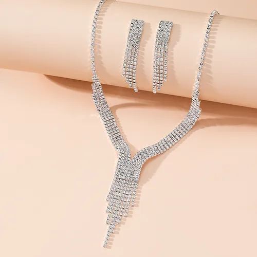 Vintage diamond tassel clavicle necklace and earrings set 760 sales