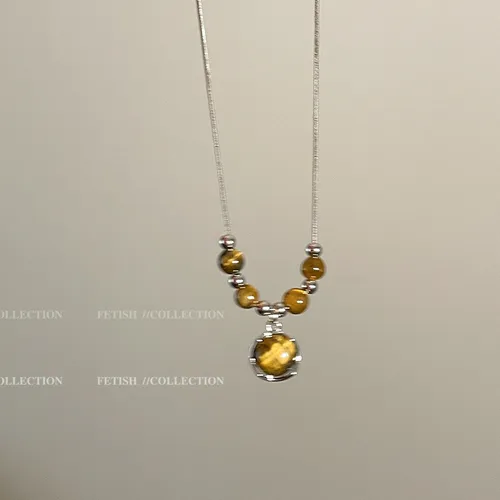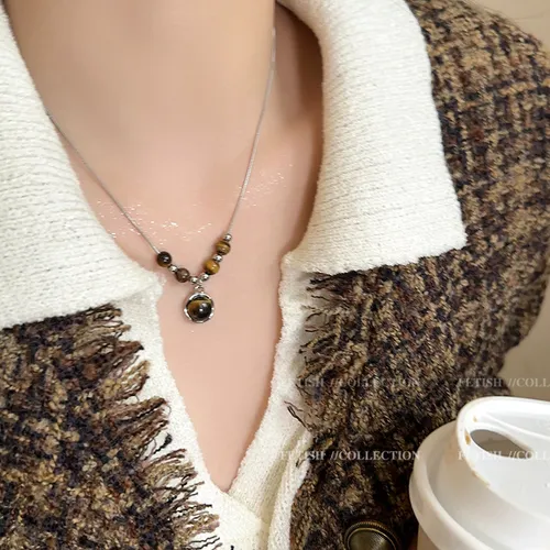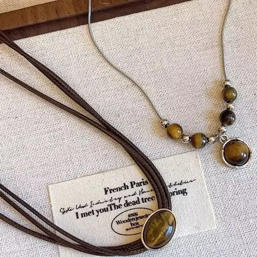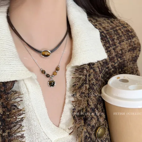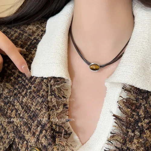 Vintage leather tiger eye necklace women's stacking choker necklace 786 sales